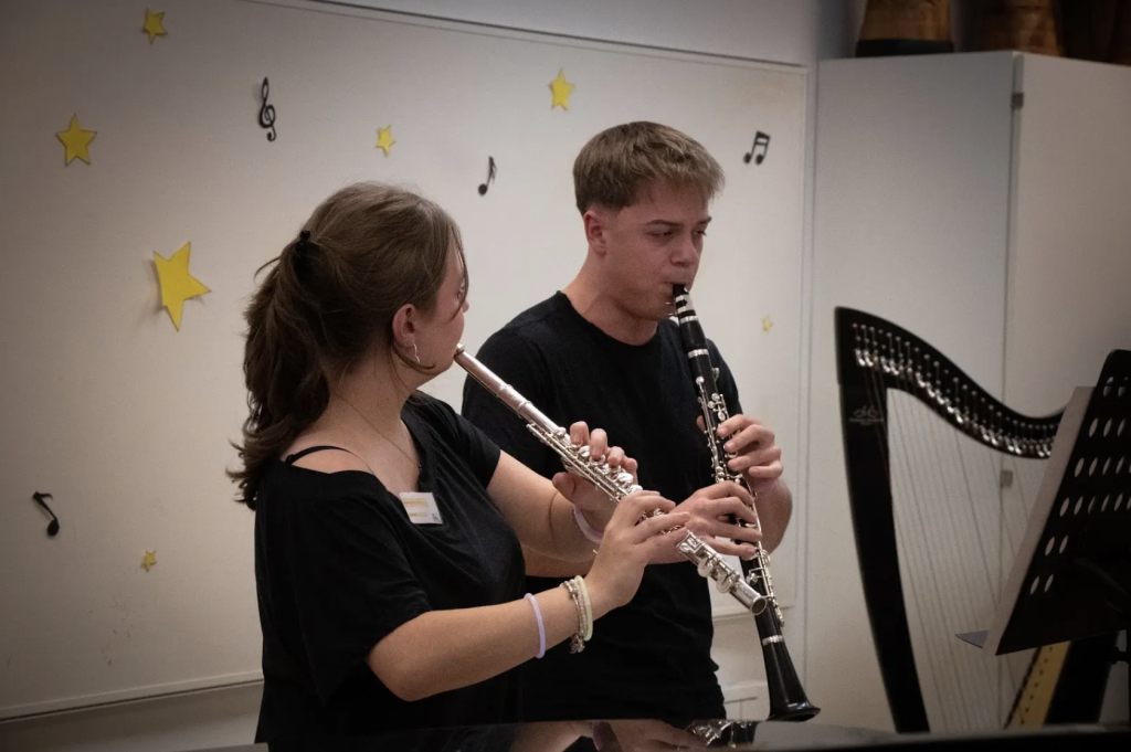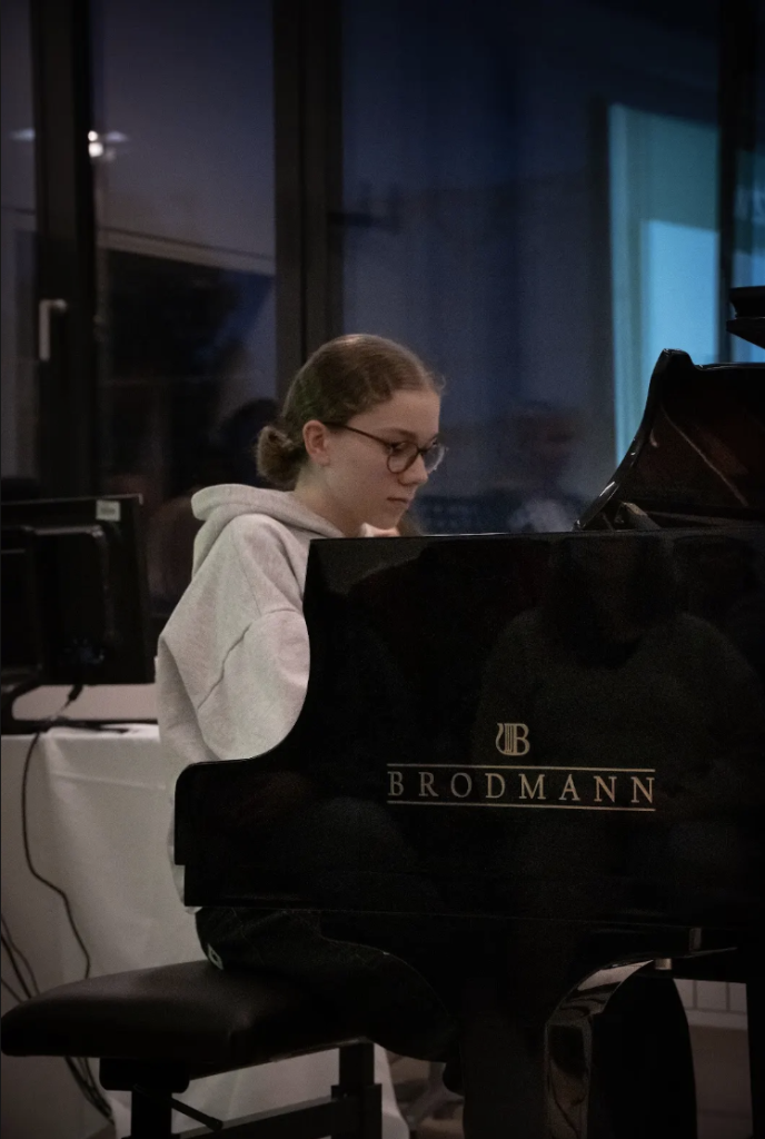 Nach der Eröffnungsfeier lud der Musikzweig zu einem weiteren Highlight in den großen Musiksaal ein. Dort erwartete die Besucherinnen und Besucher ein abwechslungsreiches Programm, das die große Bandbreite musikalischer Ausdrucksformen widerspiegelte. Wie jedes Jahr eröffnete das Vokalensemble den Konzertnachmittag und begeisterte heuer mit seiner Interpretation von „Fight Song“ von Rachel Platten. Besonders hervorzuheben ist die Uraufführung des Songs „A Wish“, den der Schüler Julian Boira selbst komponiert hat. Sowohl Text als auch Musik stammen aus seiner Feder und wurden von Lena Thaller und Julian Boira eindrucksvoll interpretiert. Auch der Einsatz besonderer Instrumente wie Harfe, Querflöte und Klarinette verlieh dem Programm eine besondere Klangfarbe und unterstrich die musikalische Vielfalt des Musikzweigs.