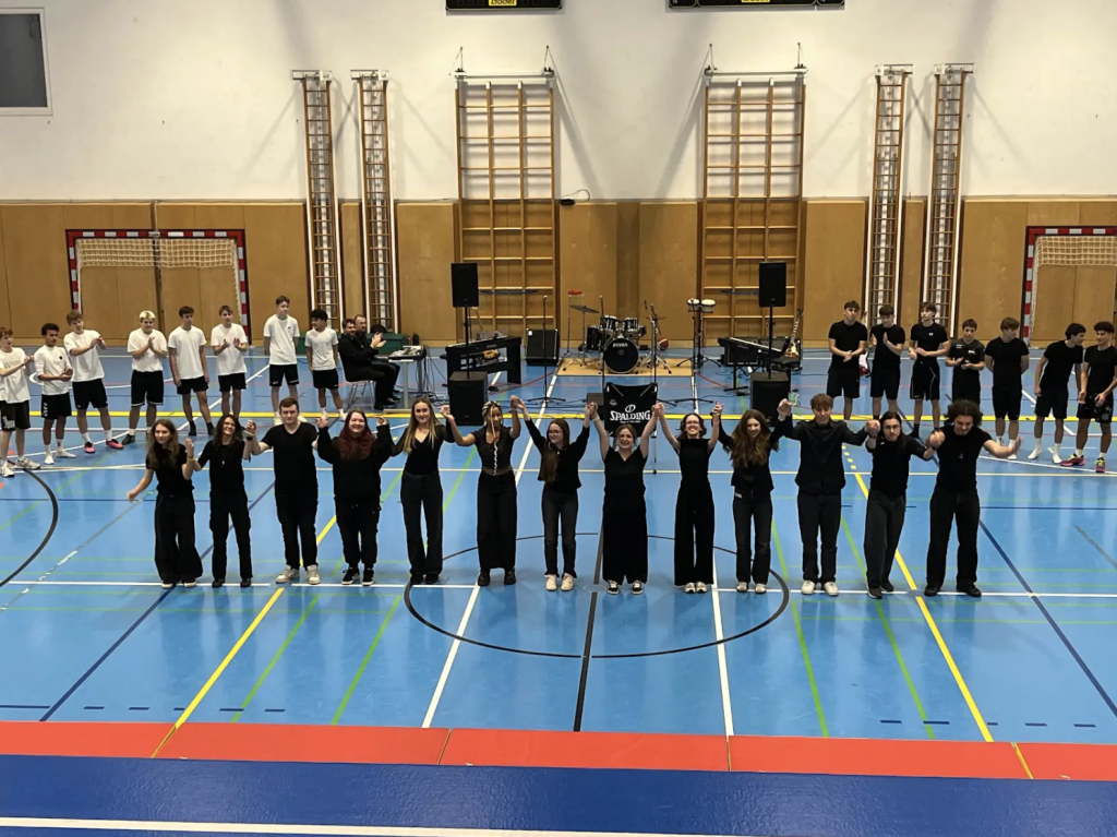 Der diesjährige Tag der offenen Tür stand ganz im Zeichen der Musik und bot zahlreiche musikalische Darbietungen. Die Schulband eröffnete die Veranstaltung und sorgte mit bekannten Hits für eine mitreißende Stimmung. Parallel dazu faszinierten die Sportlerinnen und Sportler das Publikum mit einer dynamischen Show aus Turnen, Akrobatik, Showbasketball und Tanz.