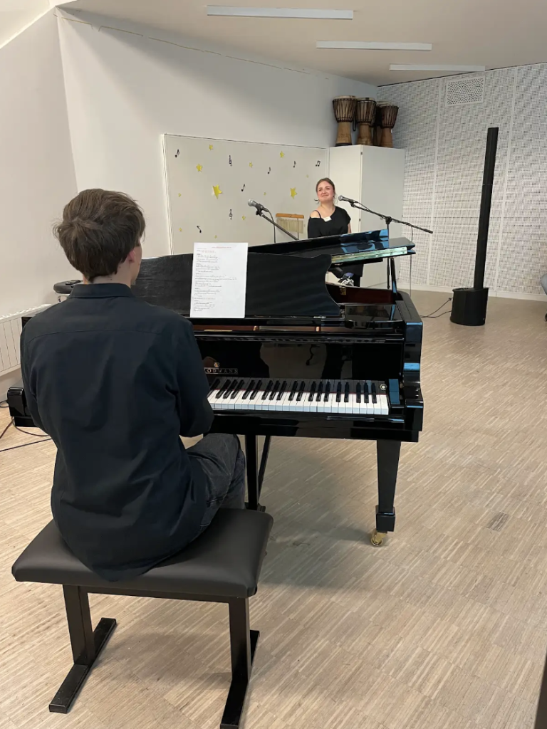 Ein zusätzlicher Programmpunkt war der Besuch im hauseigenen Tonstudio. Hier erhielten die Gäste einen spannenden Einblick in die kreative Arbeit der Schülerinnen und Schüler – von der Aufnahme über das Abmischen bis hin zum finalen Feinschliff.