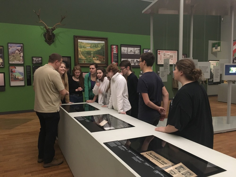 So besuchten wir, die 8A und die 7C gemeinsam mit unserer Geschichteprofessorin Ulrike Hofer, am 31. Jänner 2018 diese Ausstellung in St. Pölten. Zuerst wurden wir durch die Ausstellung geführt, und lernten dabei viele interessante und auch neue Details – über die genaue Entstehung und die wirtschaftliche Lage Österreichs nach dem Ersten Weltkrieg, aber auch über den Bürgerkrieg 1934 und den Weg bis zum Anschluss an das Deutsche Reich – kennen.