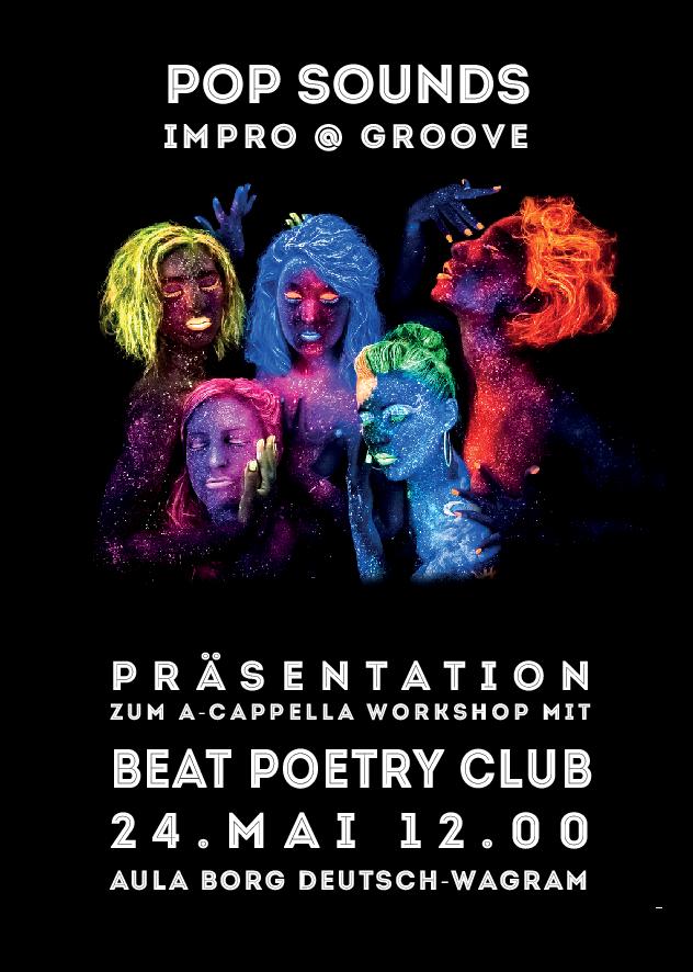 Der Workshop mit Beat Poetry Club findet am 14.5. und 24.5. für interessierte MusikerInnen statt und wird finanziert von Kulturkontakt Austria und Musik Aktuell. Die Ergebnisse werden am Donnerstag, den 24.5., in der Aula der Schule gemeinsam mit den Sängerinnen des Beat Poetry Club – Juci Janoska, Nina Braith, Ursula Wögerer, Mira Vegas-Kratochwil, Lilly Janoska – präsentiert.