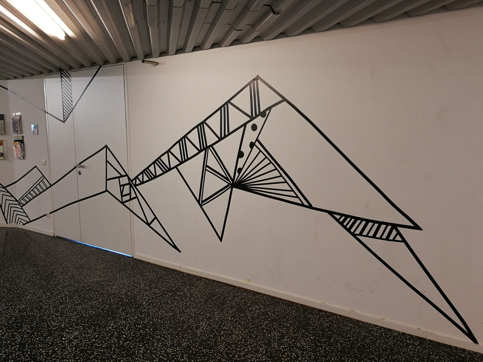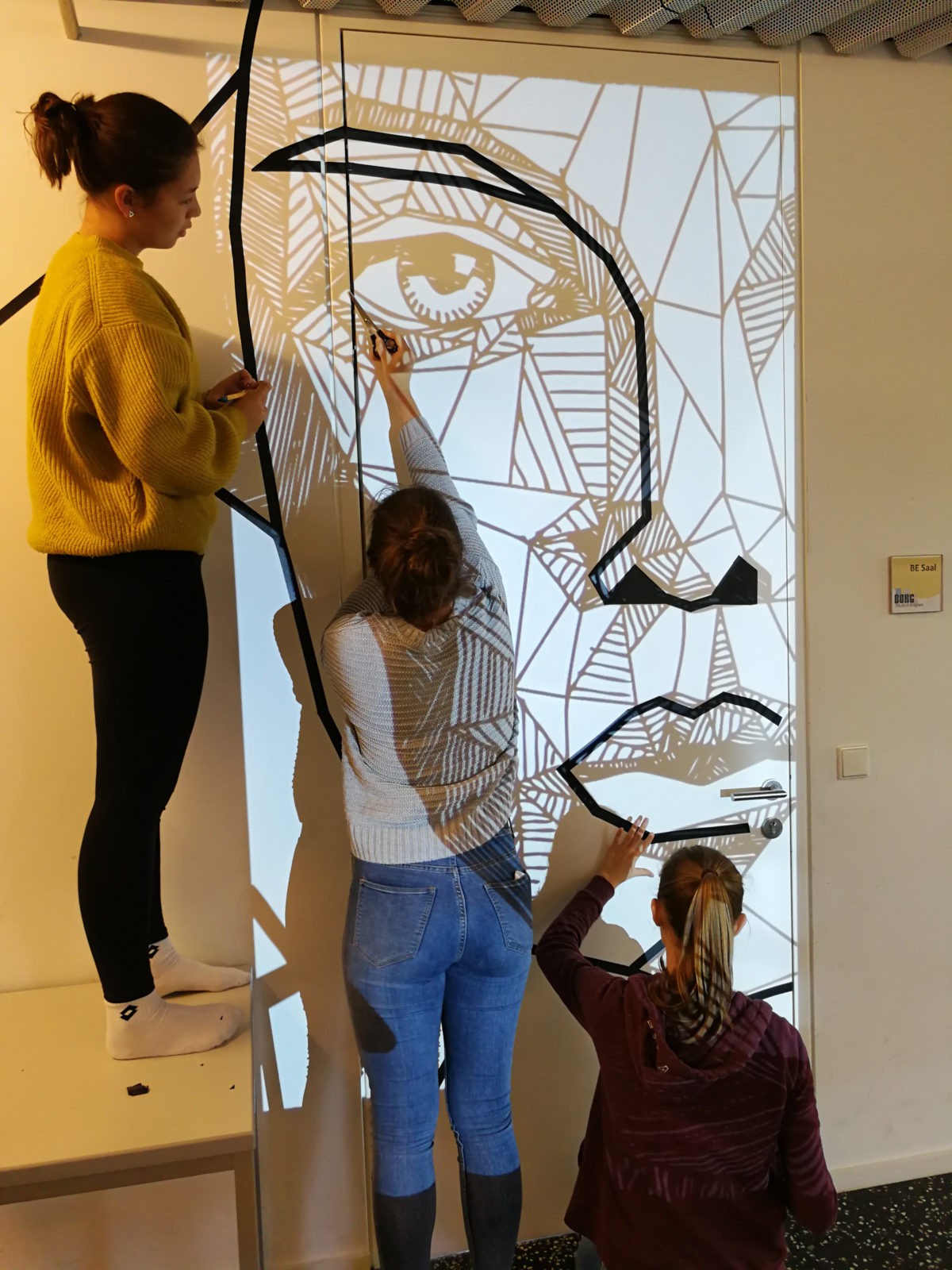 Aus vielen guten Ideen einigte sich die Gruppe auf ein “Tape Art”-Projekt. “Tape Art”, auch “Klebebandkunst” genannt, ist eine Kunstform, die ursprünglich in der Urban Art aufgekommen ist. Dabei wird ein Motiv mittels Klebeband auf die Wand aufgebracht.