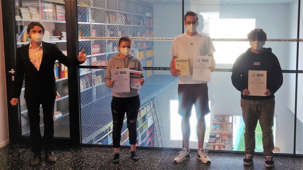 Die jeweiligen Mathematiklehrkräfte überreichten den besten unter den Profidenksportlerinnen und -sportlern die Urkunden und die Preise für die besten Drei der Schule.