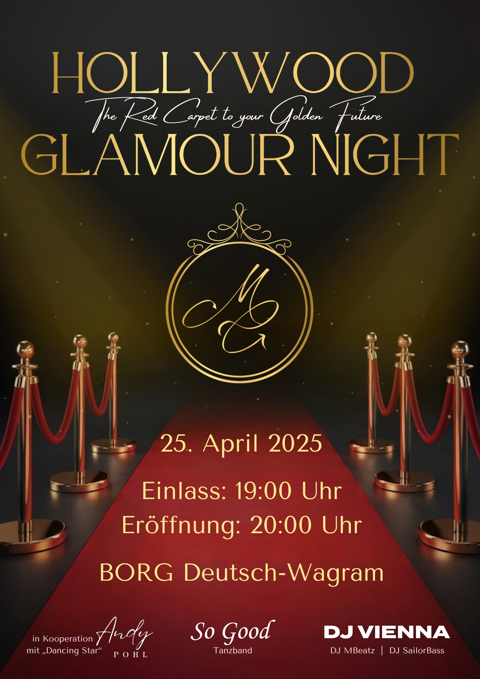 Ein Abend wie im Film: Am 25. April 2025 feierten wir die Premiere unserer neu konzipierten Matura-Gala. Unter dem Motto »Hollywood Glamour Night« verabschiedeten wir unsere Maturantinnen und Maturanten mit viel Stil und läuteten damit eine neue Ära am BORG ein, die den traditionellen Ball ablöste.