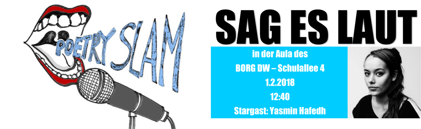 Zwei Tage vor Beginn der Semesterferien, am 1.2.2018, holten sich die Schülerinnen und Schüler der 6B Klasse eine ganz spezielle Energie für einen schwungvollen Ausgang des Semesters. In der Bibliothek der Schule begann der Workshop über die neue Literatur- bzw. Performancedisziplin “Poetry Slam”, die besonders unter Jugendlichen in den letzten Jahren zahlreiche Anhängerschaft gefunden hat. Yasmin Hafedh (Künstlerinnenname “Yasmo”) erzählte über die Slamszene in Österreich und lud die Jugendlichen mit einigen Assoziations- und Schreibspielen auch gleich ein, selbst mitzumachen. So entstanden innerhalb kurzer Zeit persönlich motivierte Texte, die dann auf der, schon seit Tagen vorbereiteten, Bühne in der Aula der Schule auf ihre Wirkung erprobt wurden.