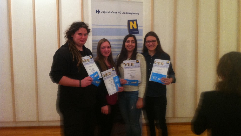 Das BORG Deutsch-Wagram war durch Milica Ilic und Schulsprecher Florian Schweitzer, 7A vertreten. Unterstützt wurden die Teilnehmerinnen durch KlassenkameradInnen der 7A und D-Lehrer Christian Lustig, die sie zum Bewerb nach Mistelbach begleiteten. Trotz eines sehr hohen Niveaus aller Rednerinnen und Redner konnte Florian Schweitzer in der Kategorie „Spontanrede“ den 1. Platz und Milica Ilic in der Kategorie „Klassische Rede“ den 3. Platz erreichen. Damit hat sich Florian Schweitzer für die Teilnahme am Landesbewerb in St. Pölten am 23. April qualifiziert. Auch Dir. Mag. Breitegger zeigte sich hocherfreut über den tollen Erfolg und war sichtlich stolz auf seine SchülerInnen.