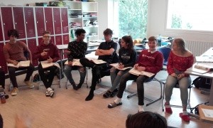 In der 6c war der Native Speaker bereits zum zweiten Mal zu Gast. Thema waren diesmal Erinnerungen aus der Kindheit. Die Schülerinnen und Schüler interviewten Manuel und machten eifrig Notizen zu seinen Erzählungen. Dabei konnten sie – ganz nebenbei – die neu gelernte Vergangenheitszeit anwenden.