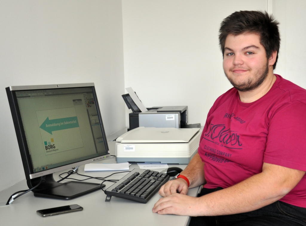 Seit Kurzem erstrahlen die Türschilder des BORG im neuen Glanz. Insgesamt 46 neue Türschilder wurden von Leonard Benirschke (7b) und Mag. Diman angefertigt und aufgehängt. Rechtzeitig zum Tag der offenen Tür wurden alle Räume im neuen Layout, passend zum neuen BORG Corporate Design, welches aus einfachen geometrischen Würfeln besteht, in gemeinsam entworfener und erarbeiteter Beschriftung gekennzeichnet. Nach einer aufwändigen Konzeptionsphase entstanden auf diese Weise schlichte, einfache und daher echt funktionale Türschilder. Wirkliche Hingucker!